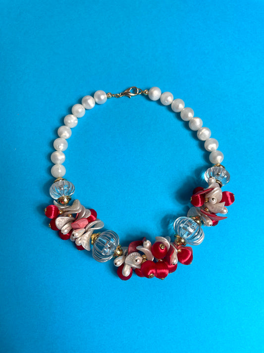 Collier 80's rouge et blanc