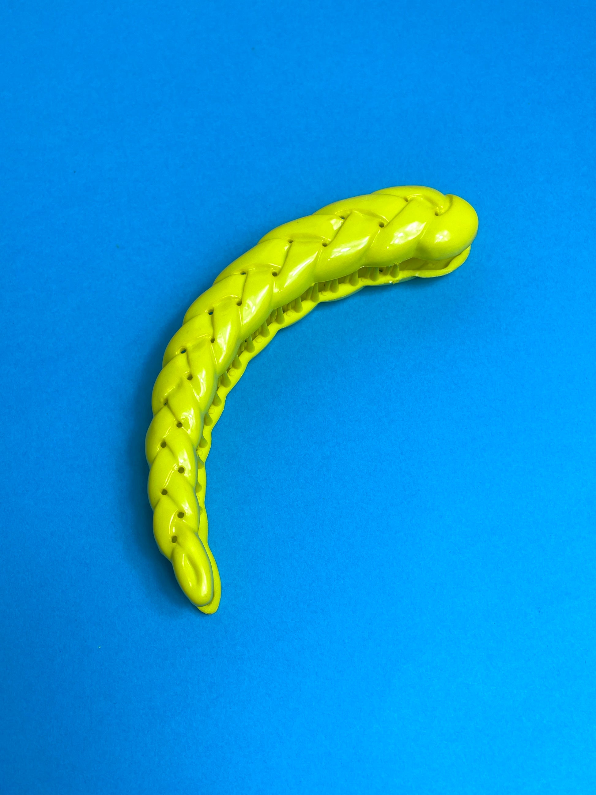 Pince à cheveux 80s en plastique jaune, 17cm, très bon état.