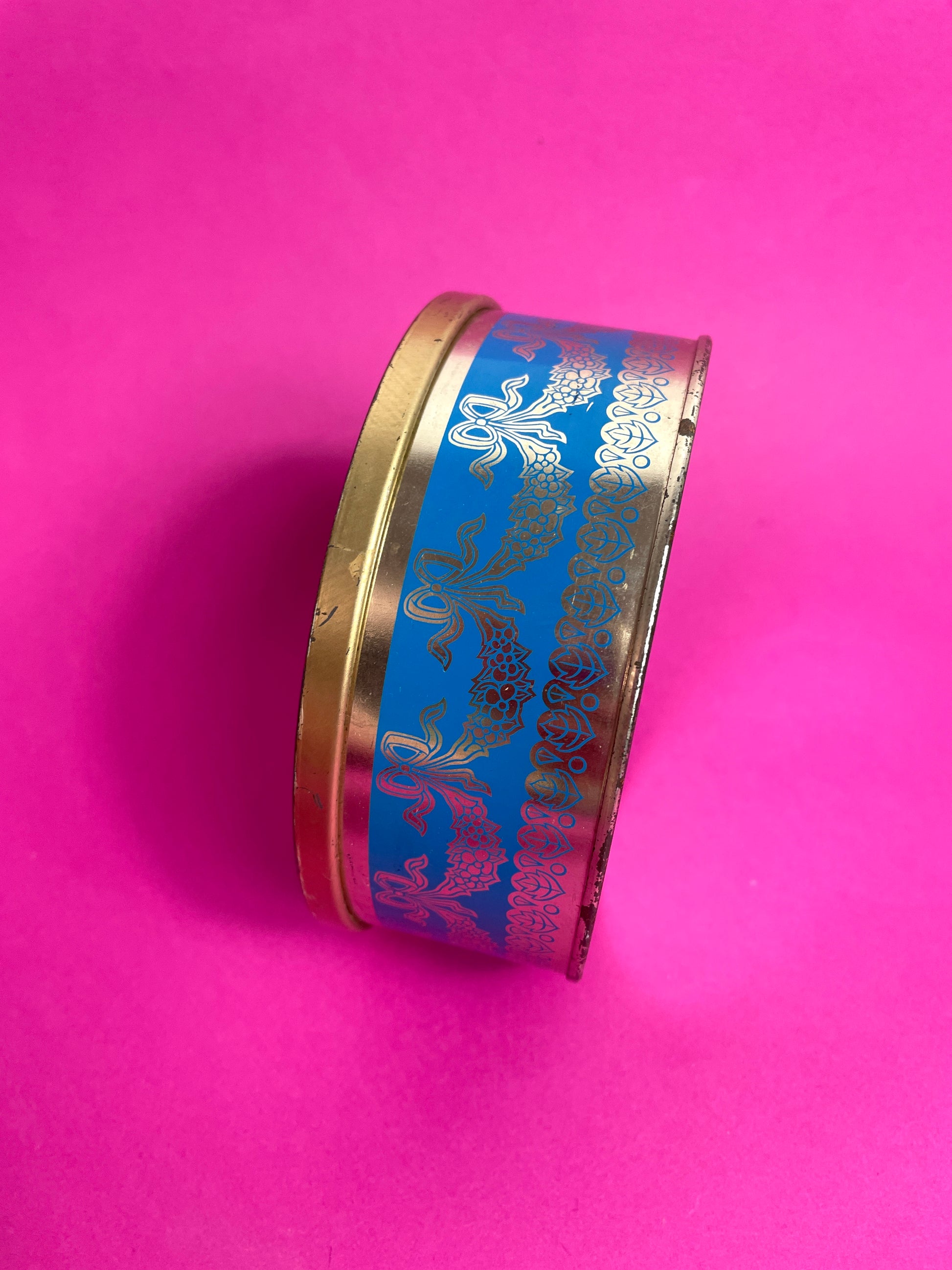 Boîte vintage en métal Queen Elizabeth II, date du Silver Jubilee de 1977 à savoir ses 25 ans de règne. 14cm de diamètre, 5cm de hauteur. Dans son jus. Chinée en Angleterre.