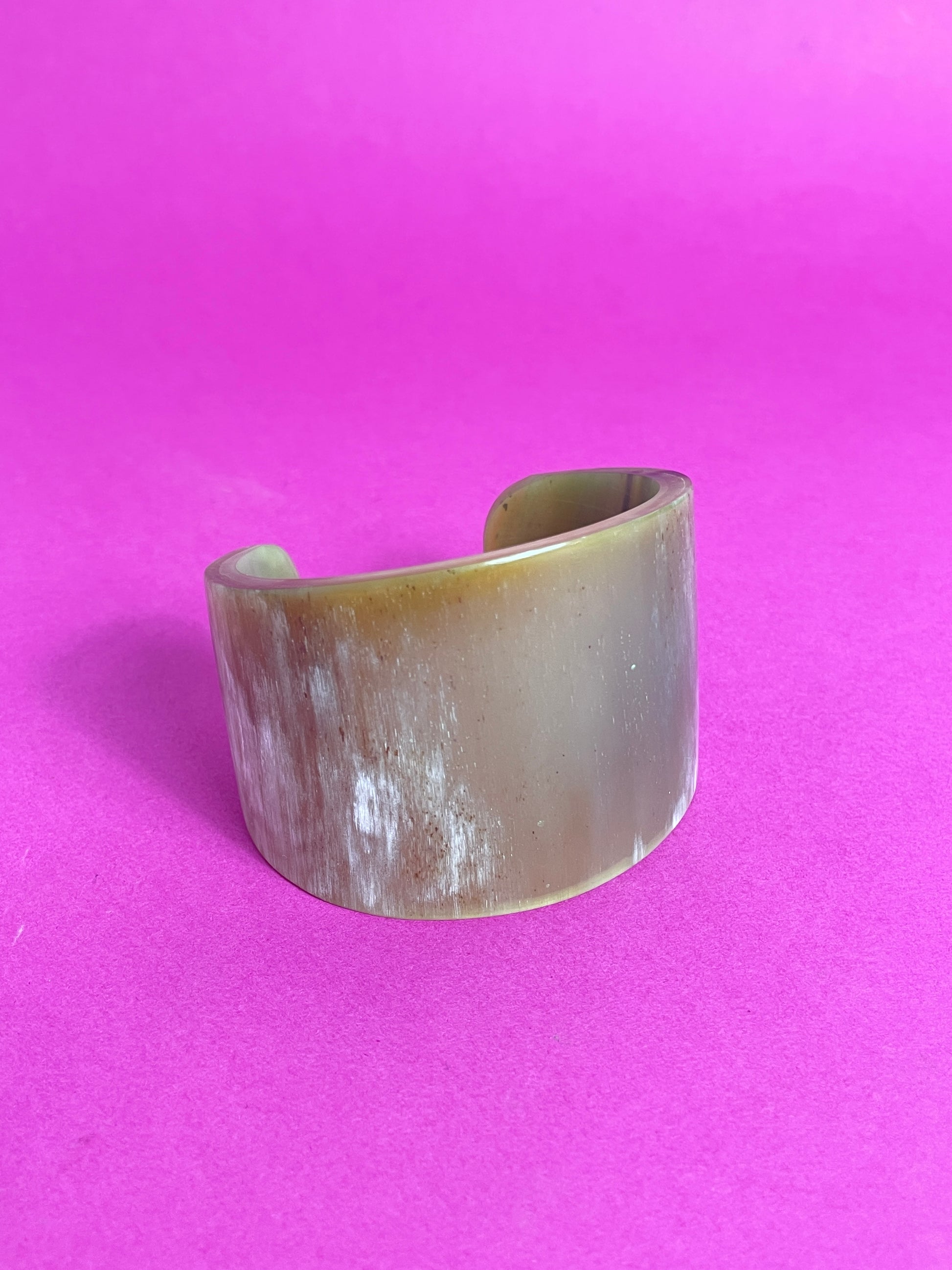 Superbe bracelet manchette en corne, tour de poignet 20cm, largeur 5cm. Très bon état. Chiné en Provence.