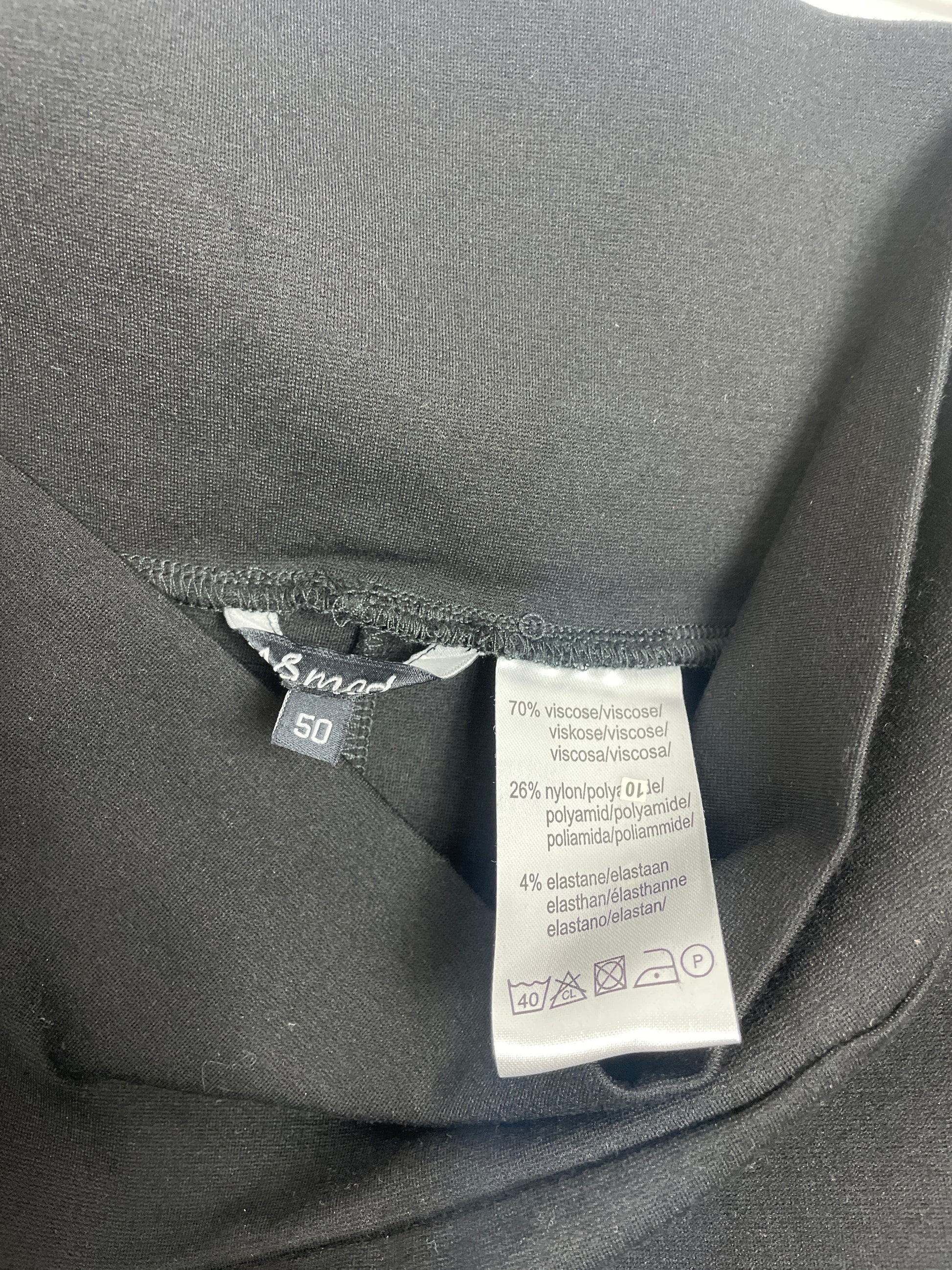 Très jolie jupe crayon noire moulante taille 52 MS Mode comme neuve en viscose, nylon et élasthanne. L'étiquette indique un 50 mais elle taille un peu plus grand, je fais du 52 et elle me va parfaitement, très confo, elle fait une belle silhouette.