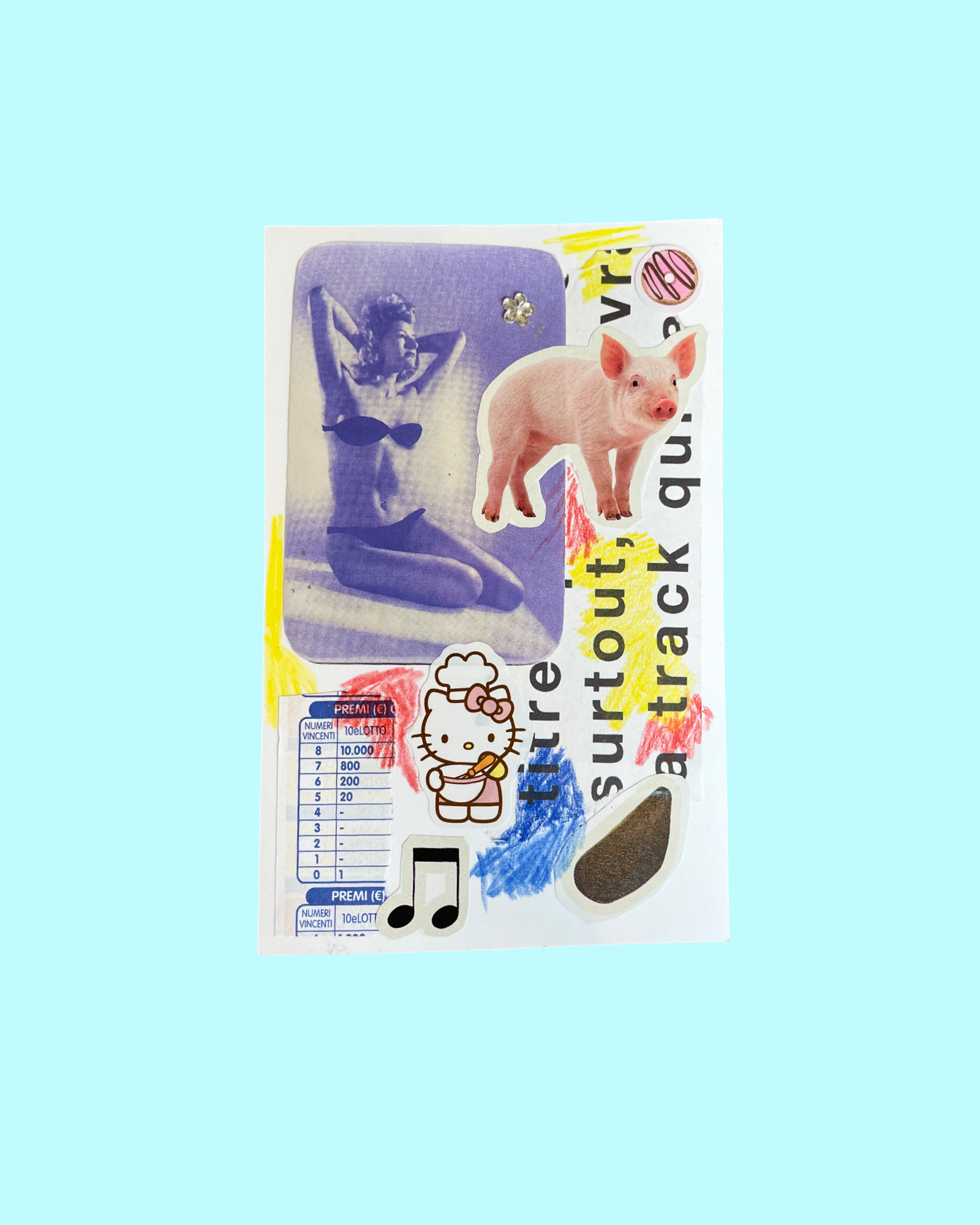 Mini collage original fait par mes soins sur papier cartonné 8x12,5cm. À encadrer ou offrir à vos ami.es pour accompagner un cadeau (ou en cadeau tout seul hihihi).