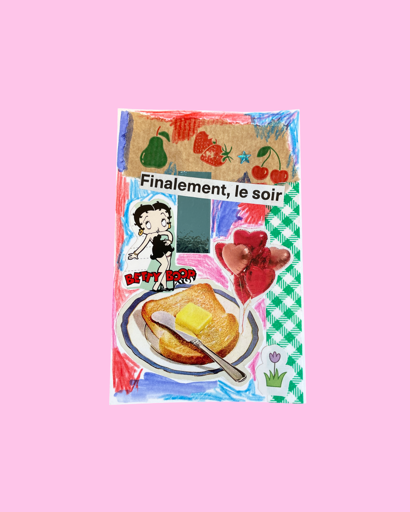Mini collage original fait par mes soins sur papier cartonné 8x12,5cm. À encadrer ou offrir à vos ami.es pour accompagner un cadeau (ou en cadeau tout seul hihihi).