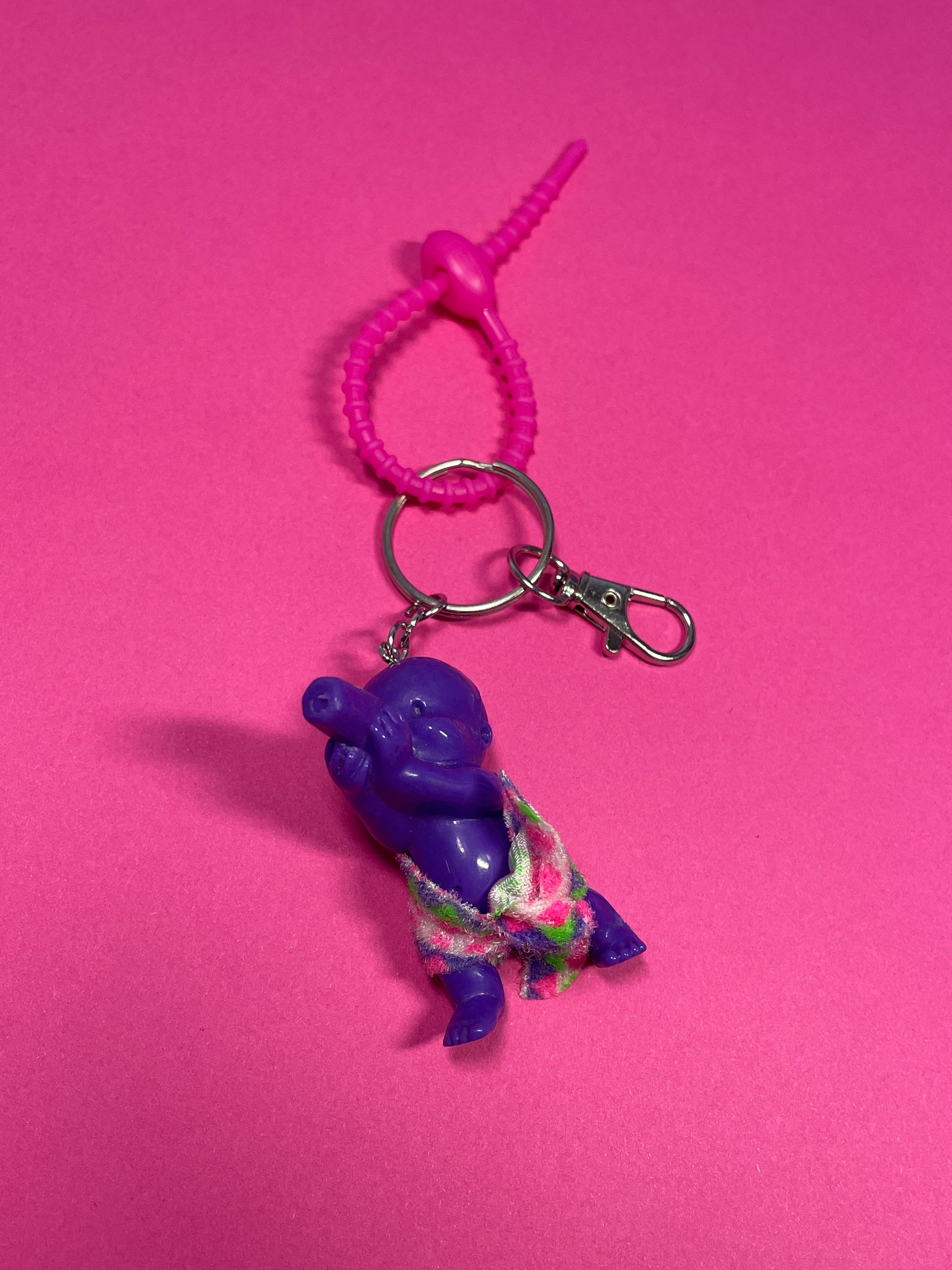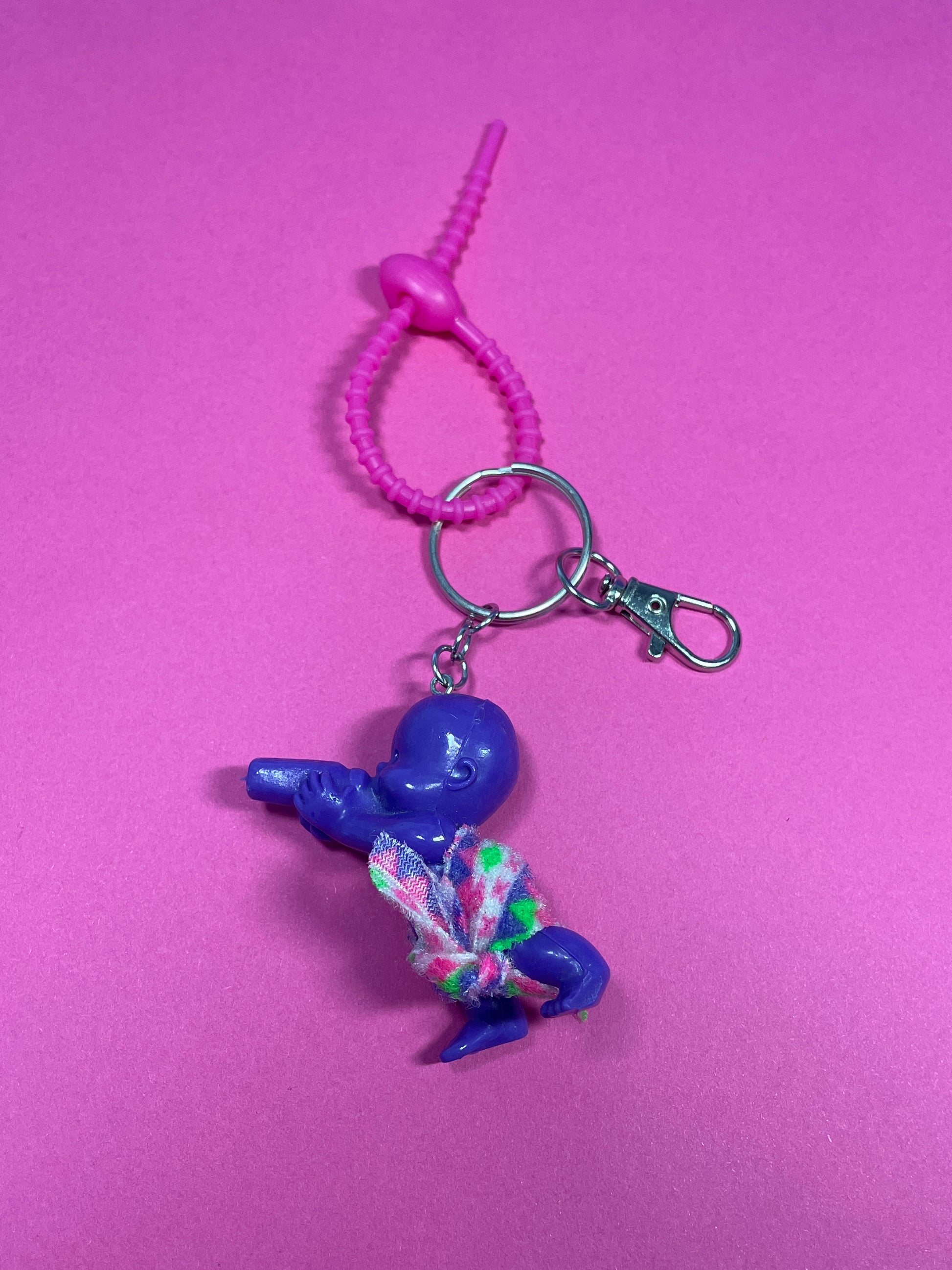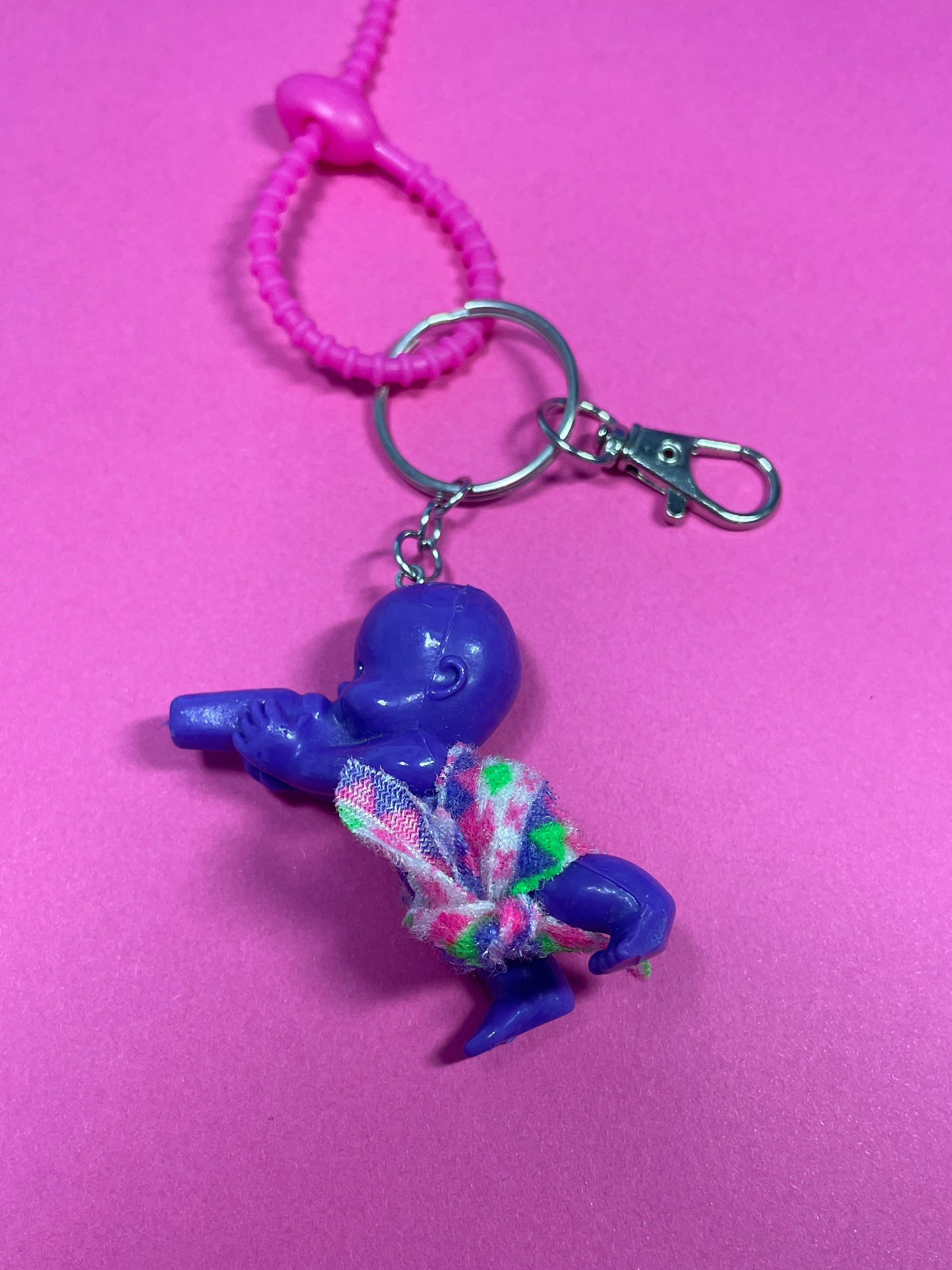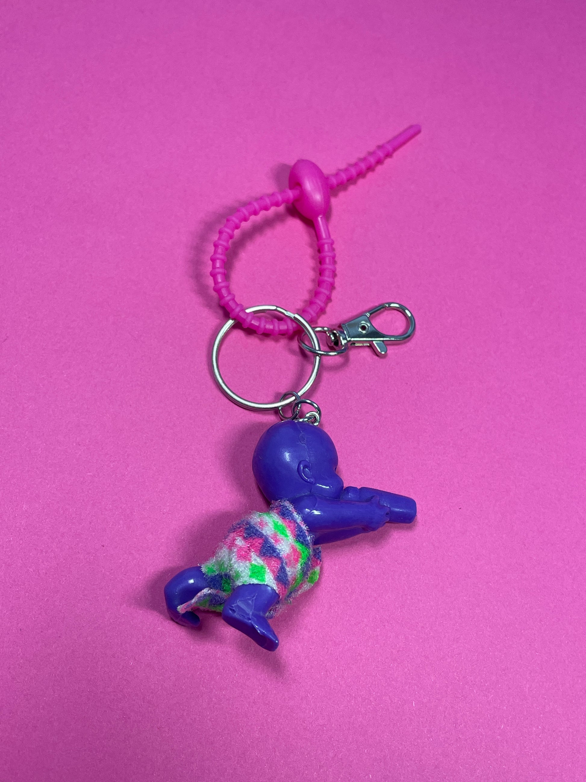 Porte-clés fabriqué main composé d'une figurine babies vintage (Galoob) violet, personnage « Étienne à la tienne » d'un mini mousqueton, un câble silicone.