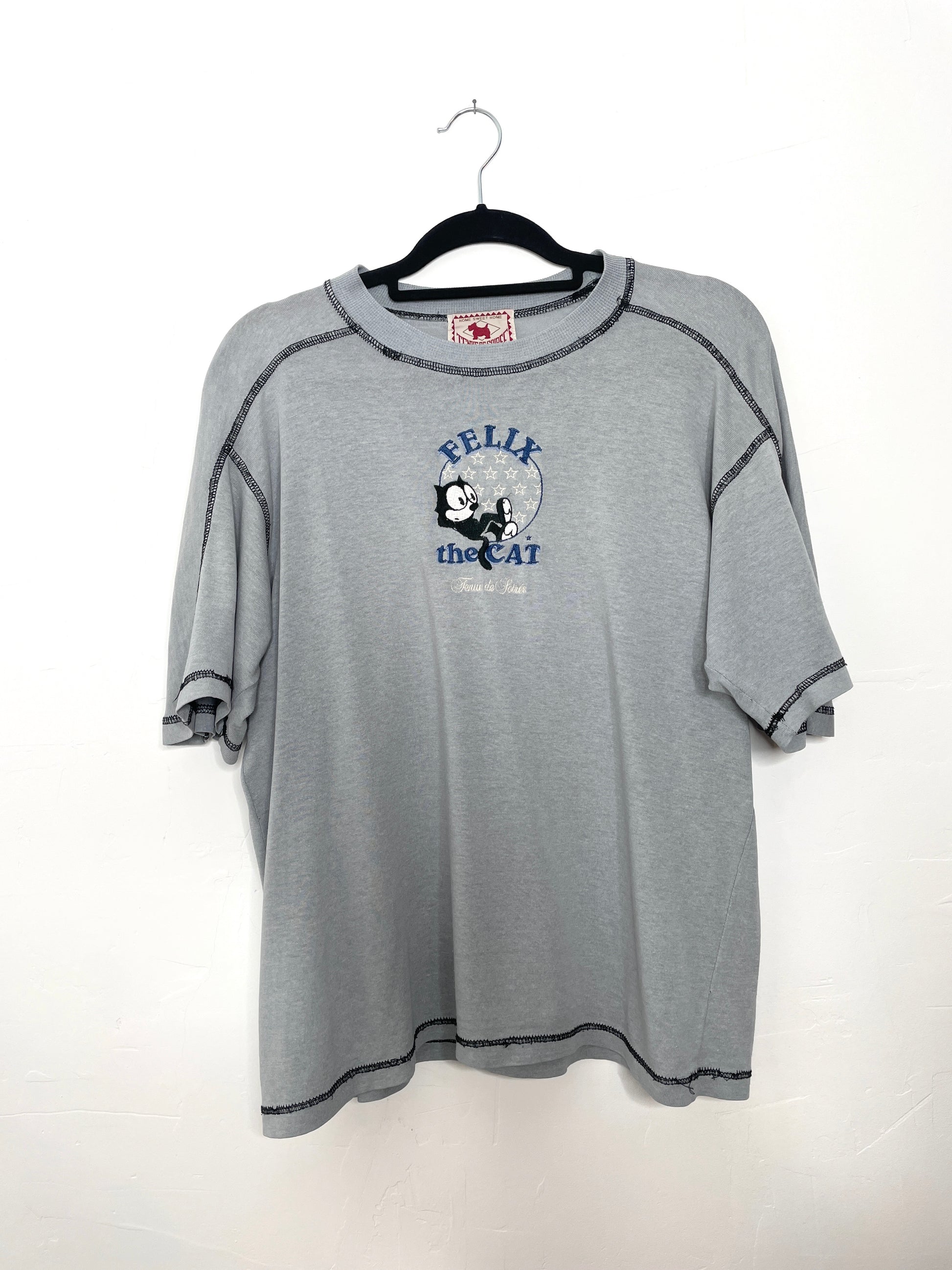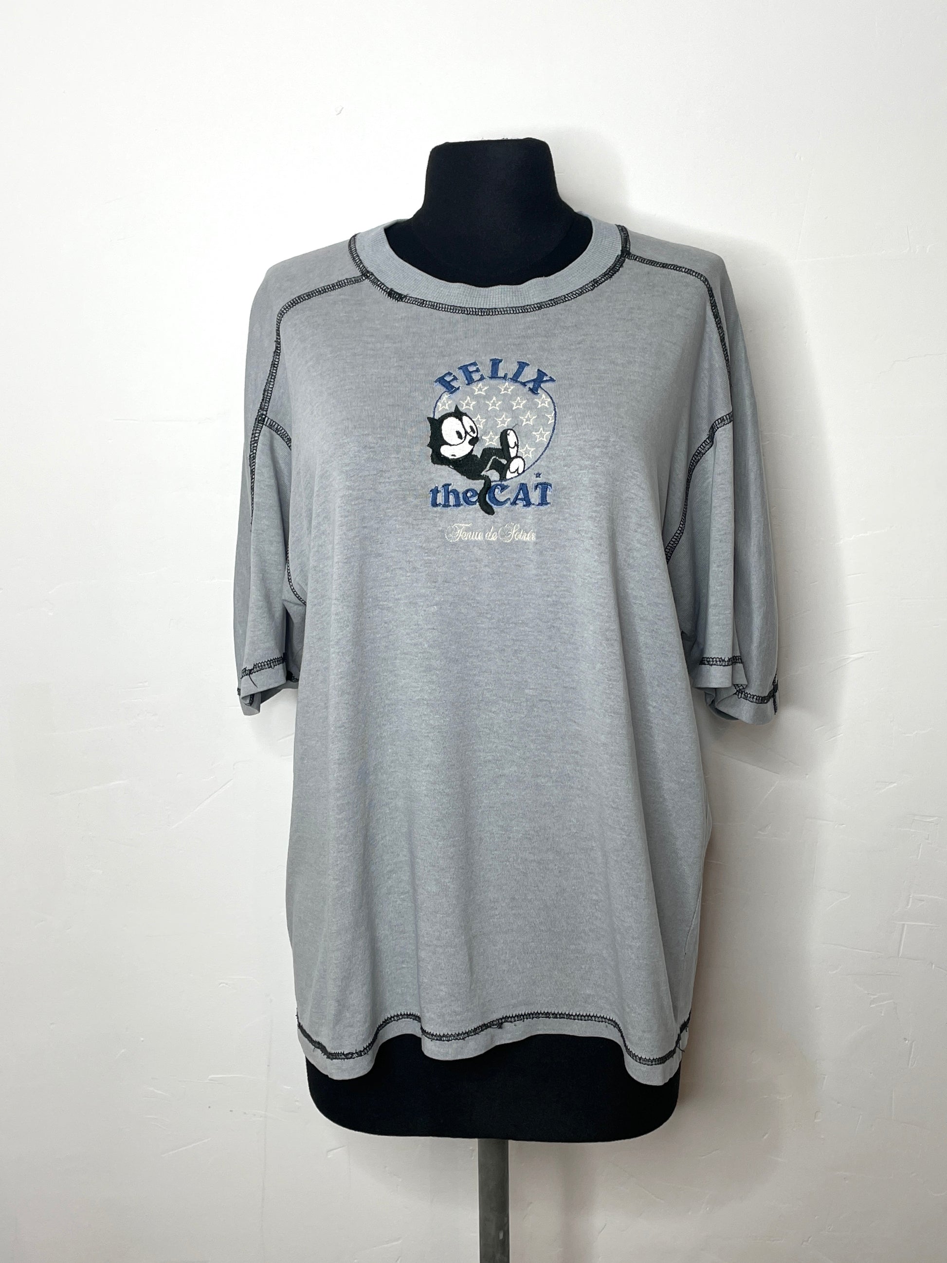 T-shirt Félix le chat vintage 90s en coton, taille L/XL, conviendra jusqu'au 48 femme. Bon état général, un peu de vécu mais de défauts majeurs. Mesures à plat : poitrine 56cm/longueur 65cm.