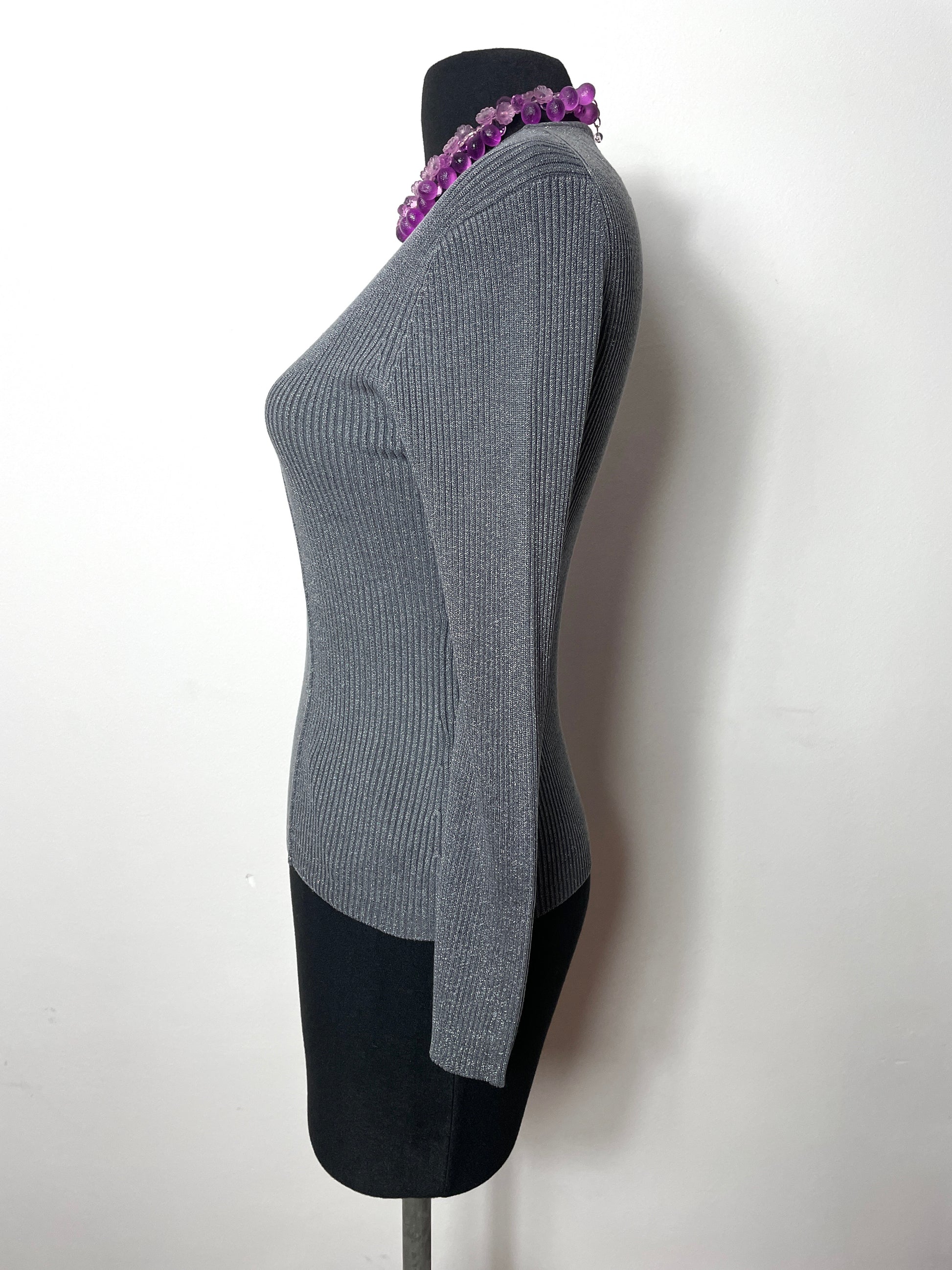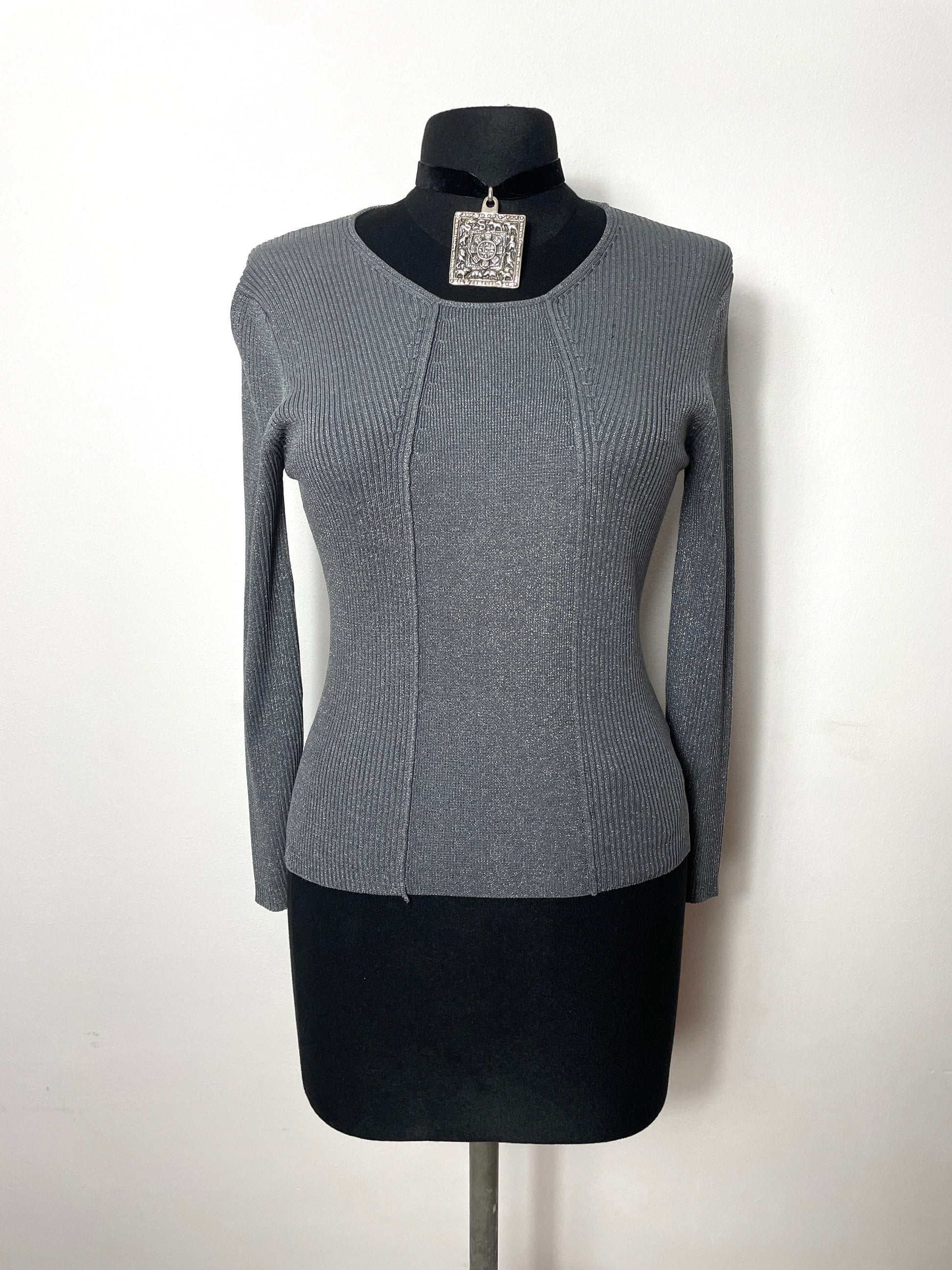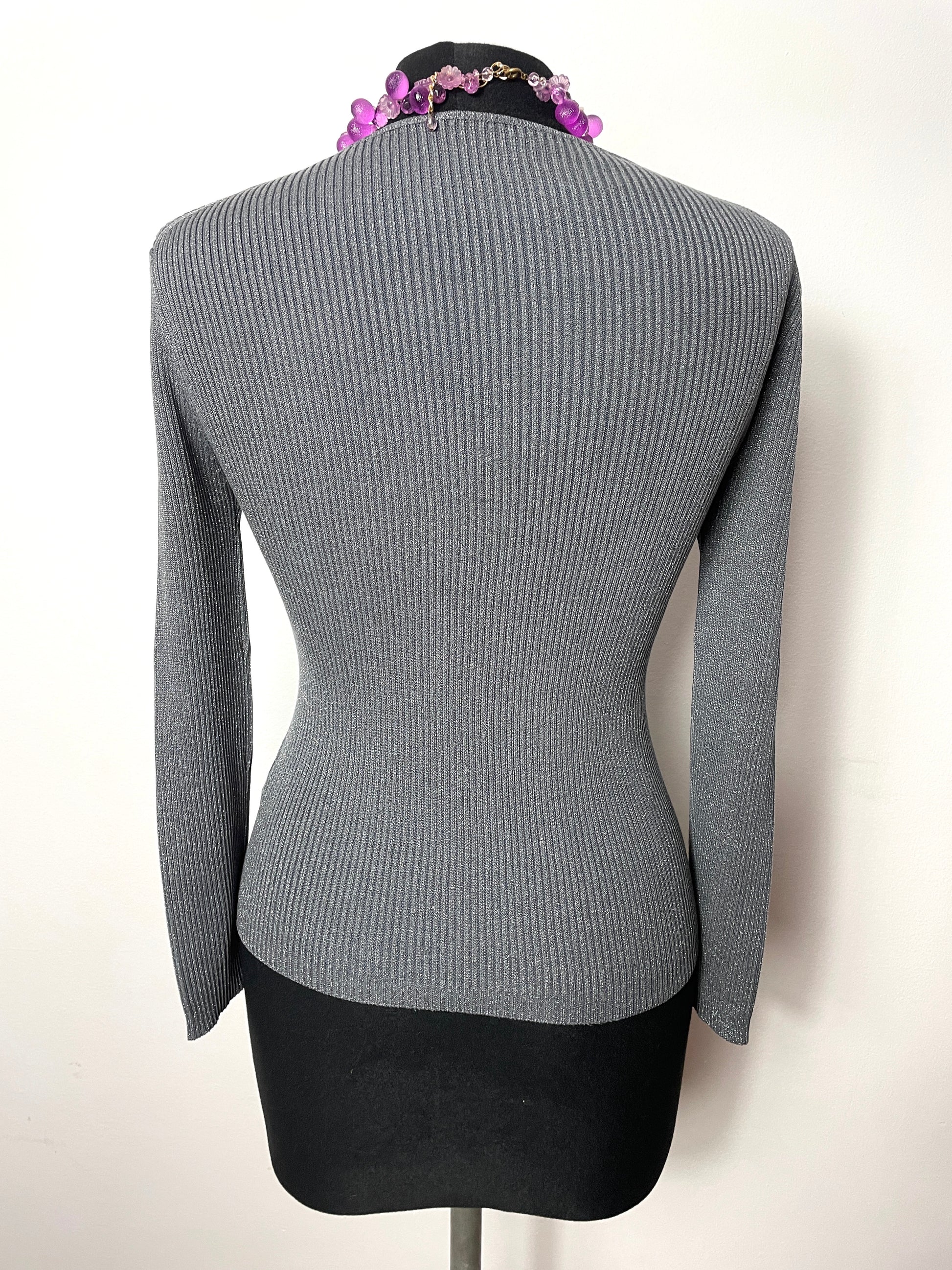 Très joli top manches longues 75% soie 25% fil métallisé, très bon état, taille 34/36.