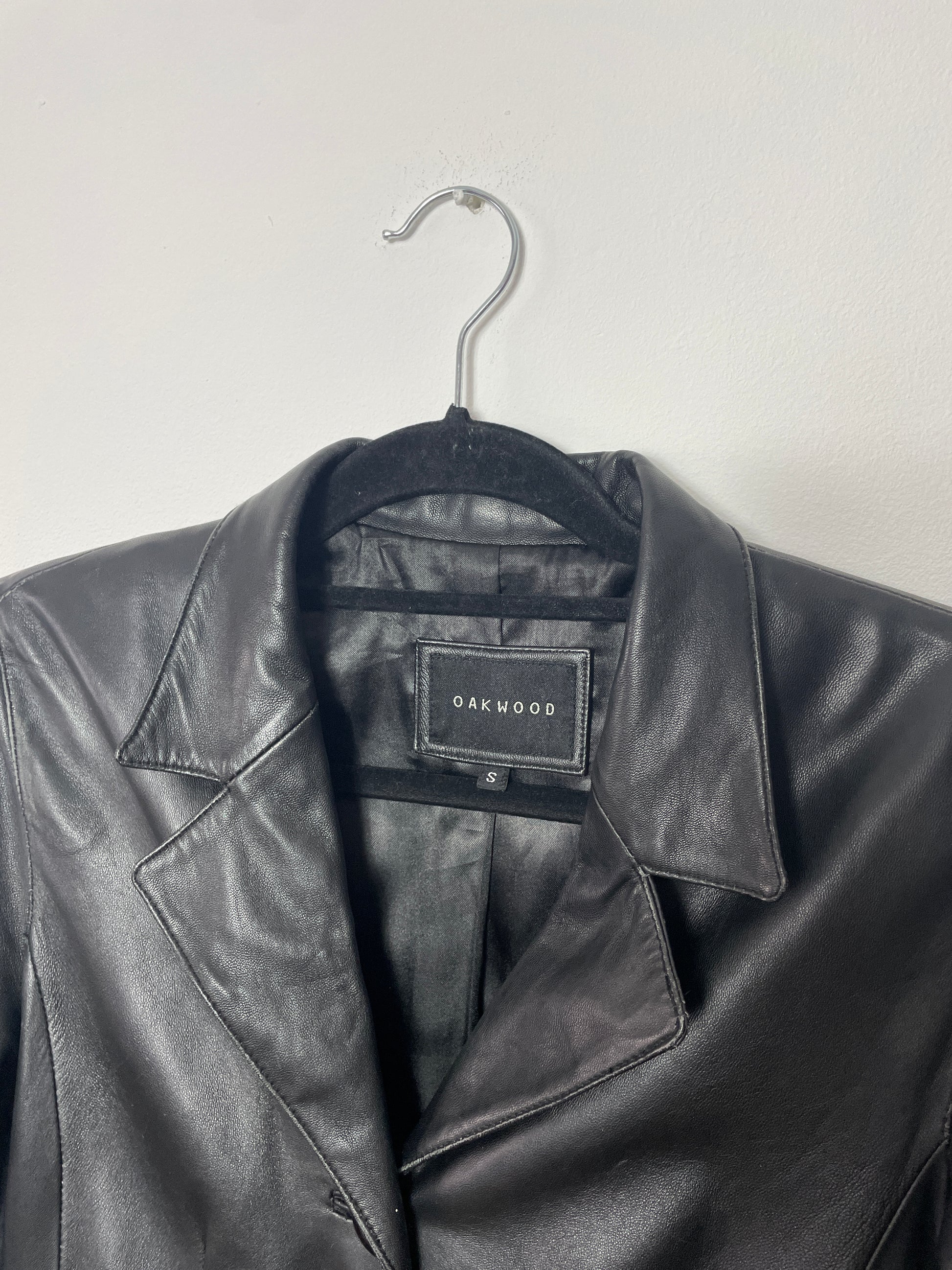 Veste vintage en cuir Oakwood, traces d'usure mais bon état général. Taille 34/36.